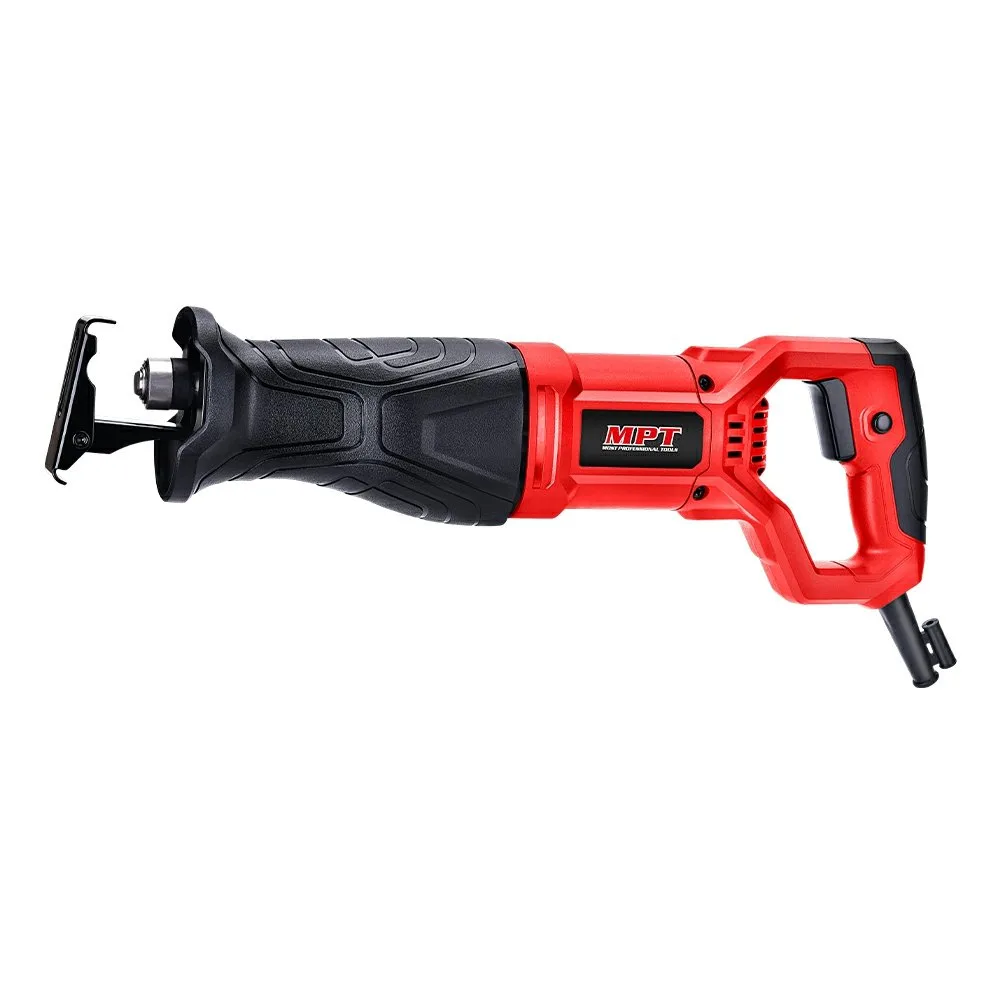 منشار ترددي أمامي MPT موديل MRS9503 بقوة 950 وات، مصمم للقطع السريع والدقيق في الخشب والمعادن والبلاستيك والأنابيب. يتميز بعمق قطع يصل إلى 150 مم في الخشب و5 مم في المعدن، مع مقبض مريح واقفال تلقائي لراحة تحكم أفضل أثناء العمل.